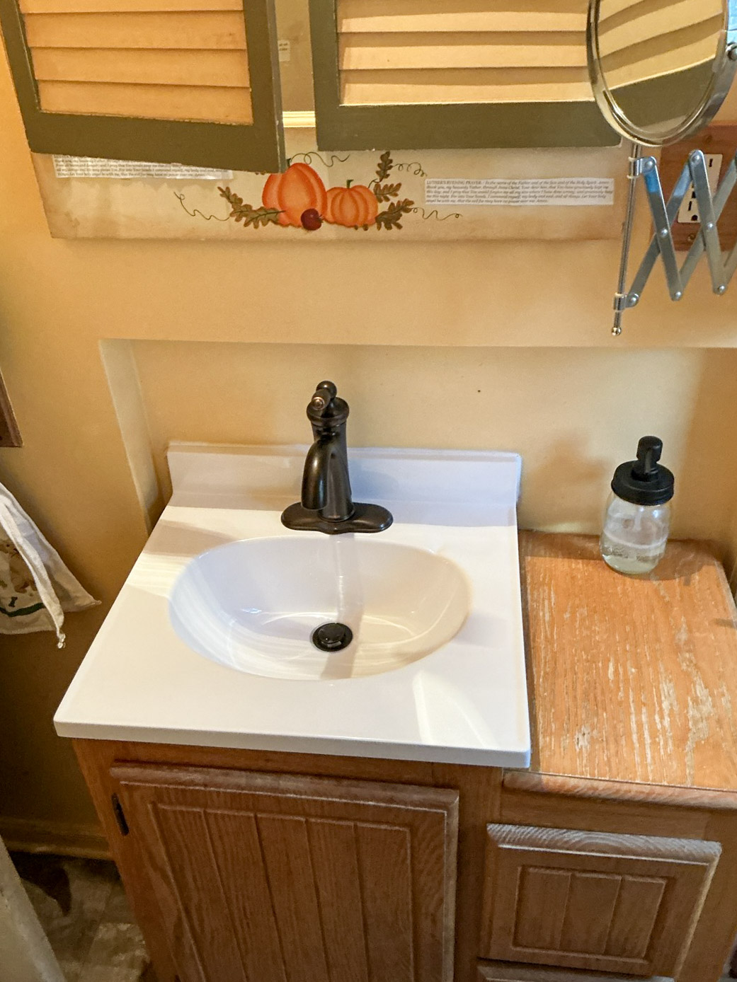 Handyside Plumbing, HVAC & Electrical provided multiple replacement options for the bathroom sink and faucet while keeping the existing vanity. The customer approved the Best option, which is to replace both the outdated, underperforming sink and the faucet, including installation of a new Moen Eva single handle faucet in oil rubbed bronze.